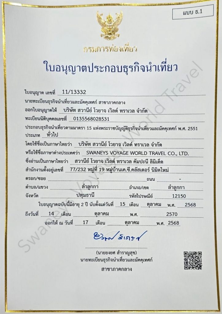 “บริษัท สวานีย์ โวยาจ เวิลด์ ทราเวล จำกัด เป็นบริษัทนำเที่ยวที่วิสัยทัศน์มองถึงลูกค้าเป็นหลัก และเป็น ผู้คร่ำหวอดในวงการท่องเที่ยวมากกว่า 10 ปี เราพร้อมสร้างสรรค์ประสบการณ์การเดินทางทั้งในประเทศและต่างประเทศ ไม่ว่าจะเป็น FIT, Incentive, Group Tour หรือ Private Journey เพื่อตอบโจทย์ทุกความต้องการของคุณ ด้วยบริการที่ครบวงจรและทีมงานคุณภาพ ที่เข้าใจว่าทุกการเดินทาง ไม่ใช่แค่ทริป…แต่คือเรื่องราวชีวิตที่คุณจะจดจำ”